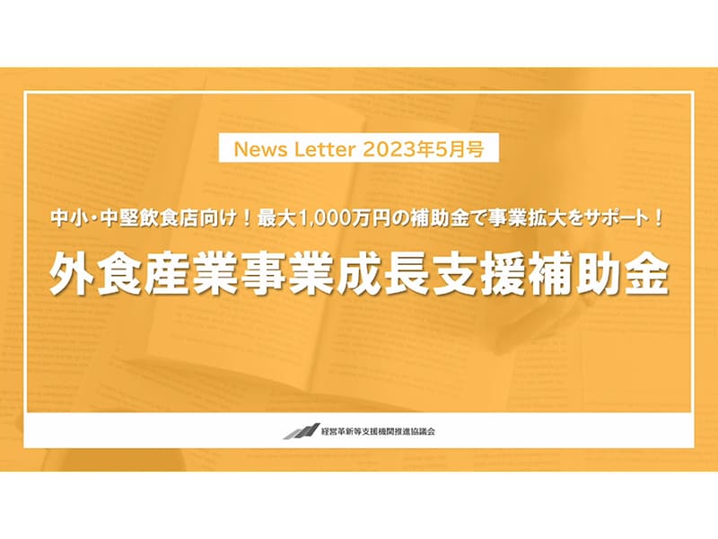 5月新着情報&新着動画 投稿日時 2023年5月1日 中小・中堅飲食店向け!外食産業事業成長支援補助金 【2023年5月号】外食産業事業成長支援補助金 案内資料ダウンロード省エネルギー投資促進に向けた支援補助金 省エネ補助金 【2023年5月号】省エネ補助金 案内資料ダウンロード