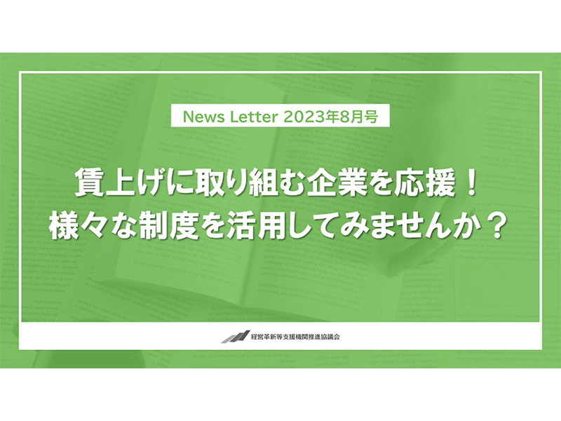 8月新着情報&新着動画 投稿日時 2023年8月1日 賃上げに取り組む企業を応援!様々な制度を活用しよう 【2023年8月号】賃上げ応援まとめ 案内資料ダウンロード採択率が高い傾向にある!ものづくり補助金 【2023年8月号】ものづくり補助金 案内資料ダウンロード