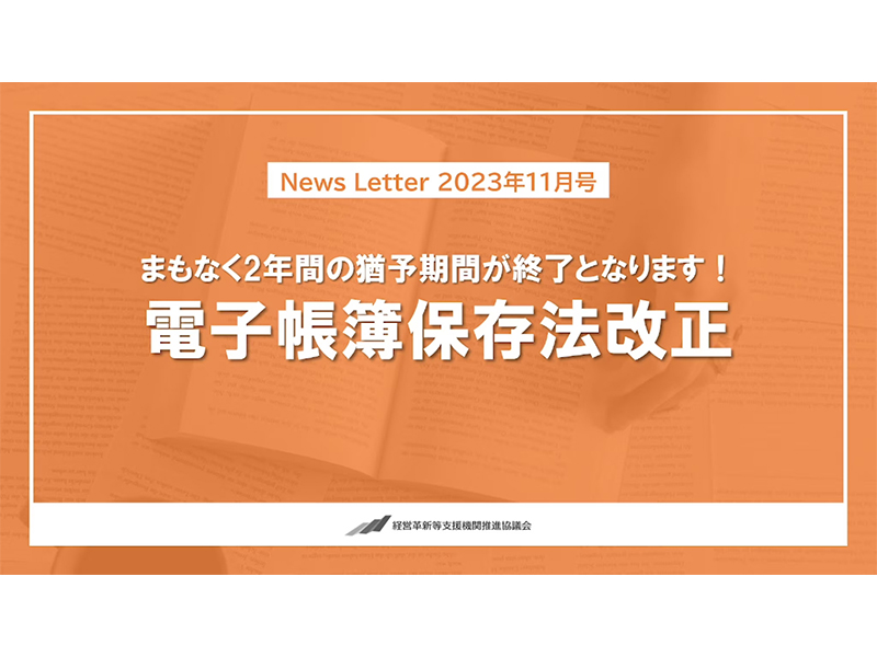 11月新着情報&新着動画 投稿日時 2023年11月1日 まもなく2年間の猶予期間が終了となります!電子帳簿保存法改正 【2023年11月号】電帳法改正 案内資料ダウンロード融資につながる高評価のコツ4選 【2023年11月号】融資につながる高評価のコツ4選 案内資料ダウンロード